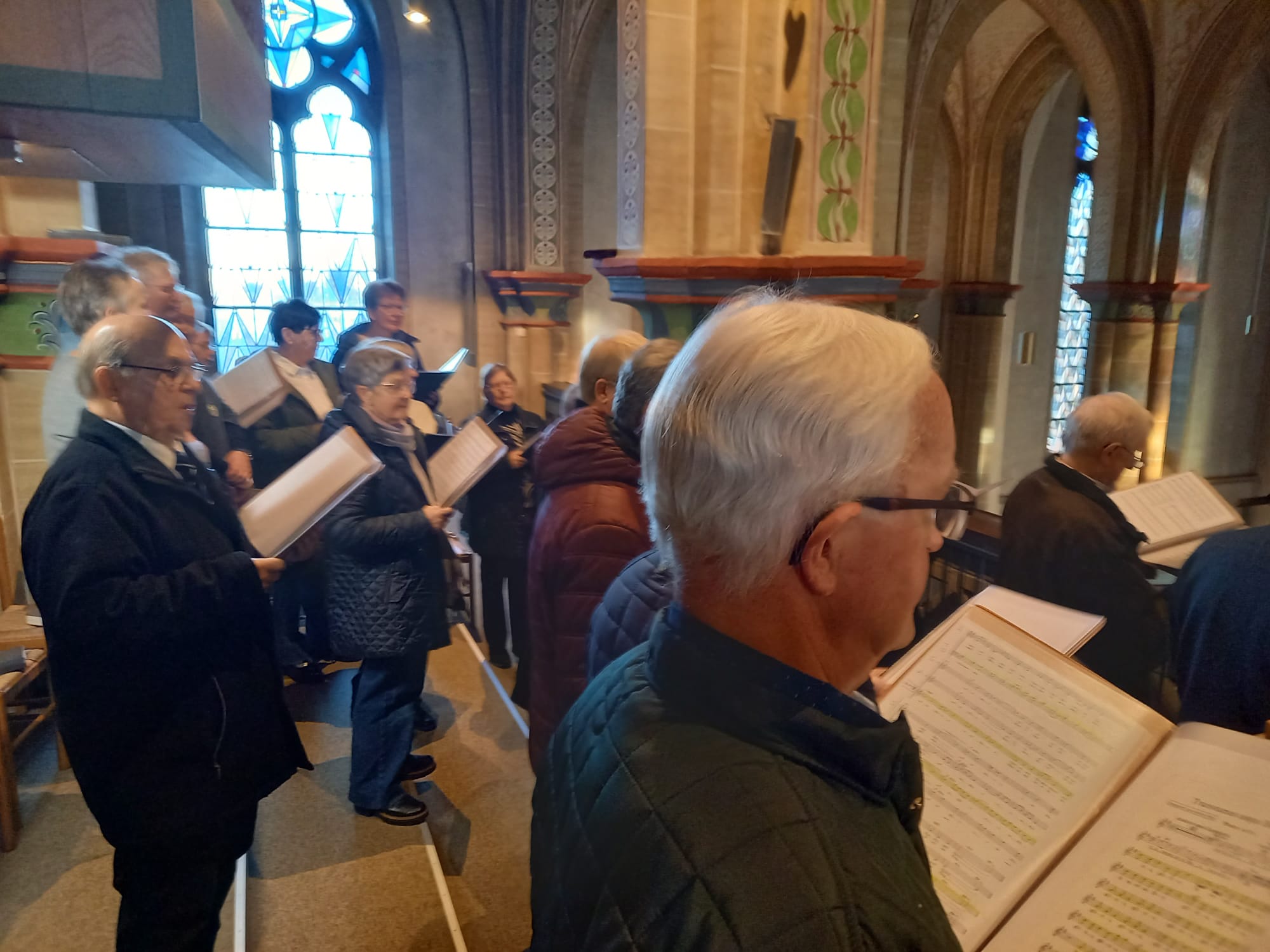Zum Gloria wurden im Wechsel mit der Gemeinde 3 Strophen von dem Lied „Allein Gott in der Höh sei Ehr“ gesungen, wobei der Chor die 2. Strophe allein a cappella sang.