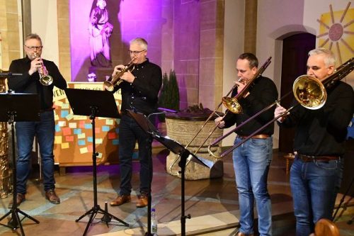 Den Abschluss bildete das gemeinsam gesungene „O du fröhliche“, bei dem Chor, Gemeinde, Bläser und Instrumentalisten noch einmal zusammenwirkten. Die Besucherinnen und Besucher nutzten im Anschluss die Gelegenheit, ihre Anerkennung mit langanhaltendem Standing Ovationen zu zeigen. Natürlich kamen die Akteure dem dabei geforderten Wunsch zu einer Zugabe nach.